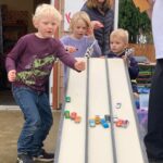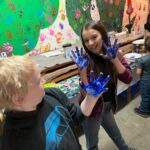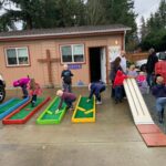 Lots of fun playing golf and using the hot wheels racetrack. Our new kids added their names and birthdate on the board and put their handprints on the Harvest Kids wall. Lots of fun making polished rock necklaces before we loaded up to drive to the Garden of Eden family ministry in west Mt. Vernon where the kids hosted a community bingo game.